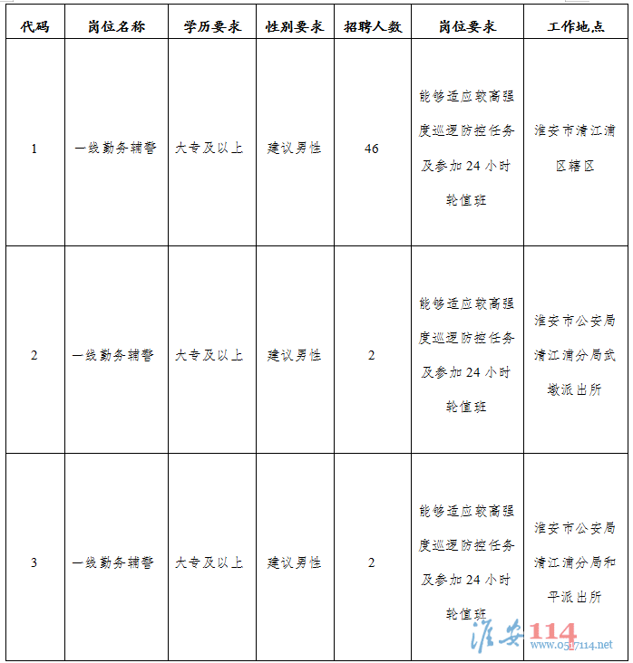 淮安百姓網(wǎng)關(guān)鍵詞:2025年淮安市公安局清江浦分局警務(wù)輔助人員招聘公告(一)